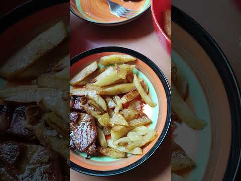 Cartofi prăjiți fragezi cu usturoi și salată de varză...